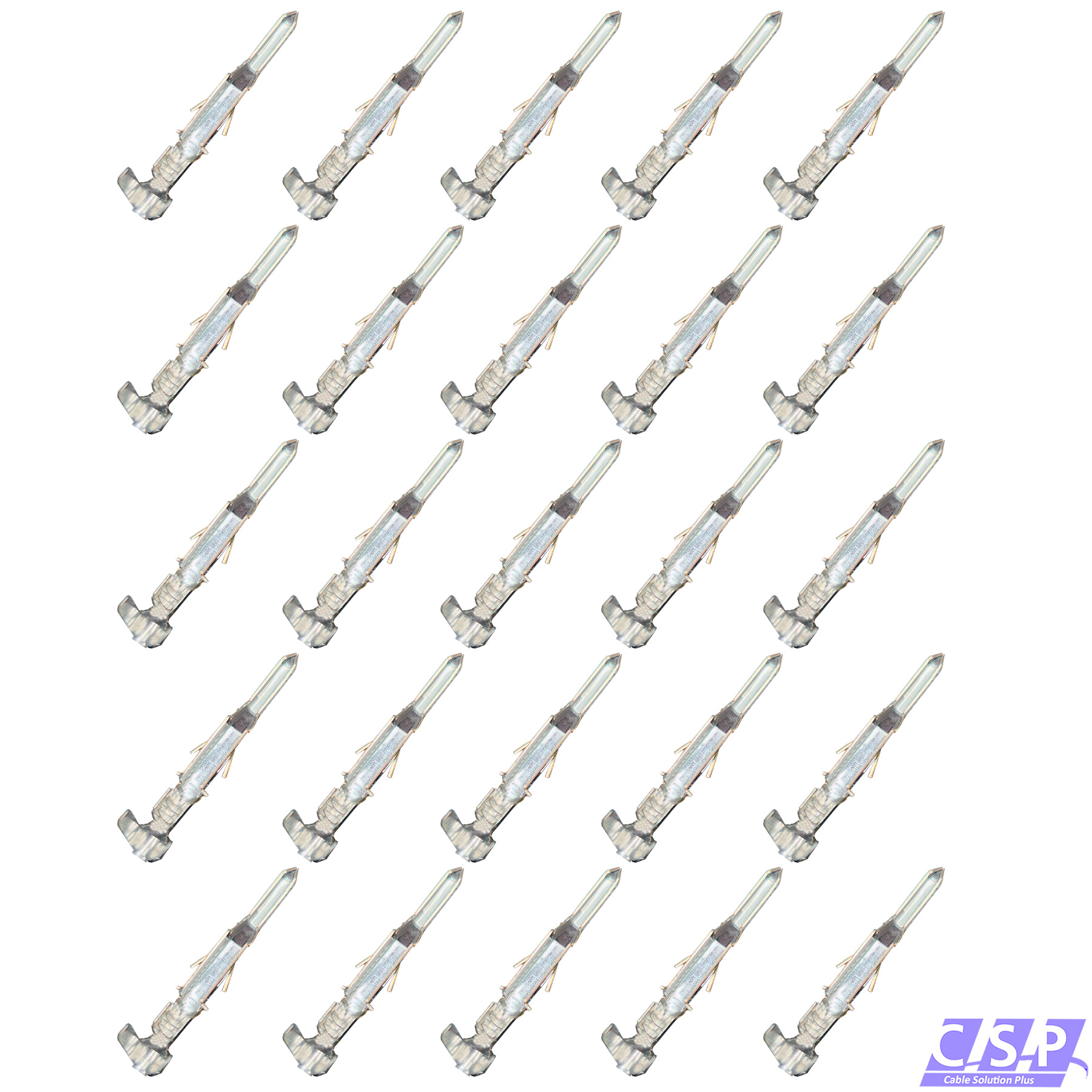 Geliefert werden 25 Stück Stift Kontakte der Serie Molex Mini-Fit Jr. mit einem Querschnittsbereich von AWG18-24 für Leitungen mit einem Außendurchmesser Ø von 1,30mm - 3,10mm.