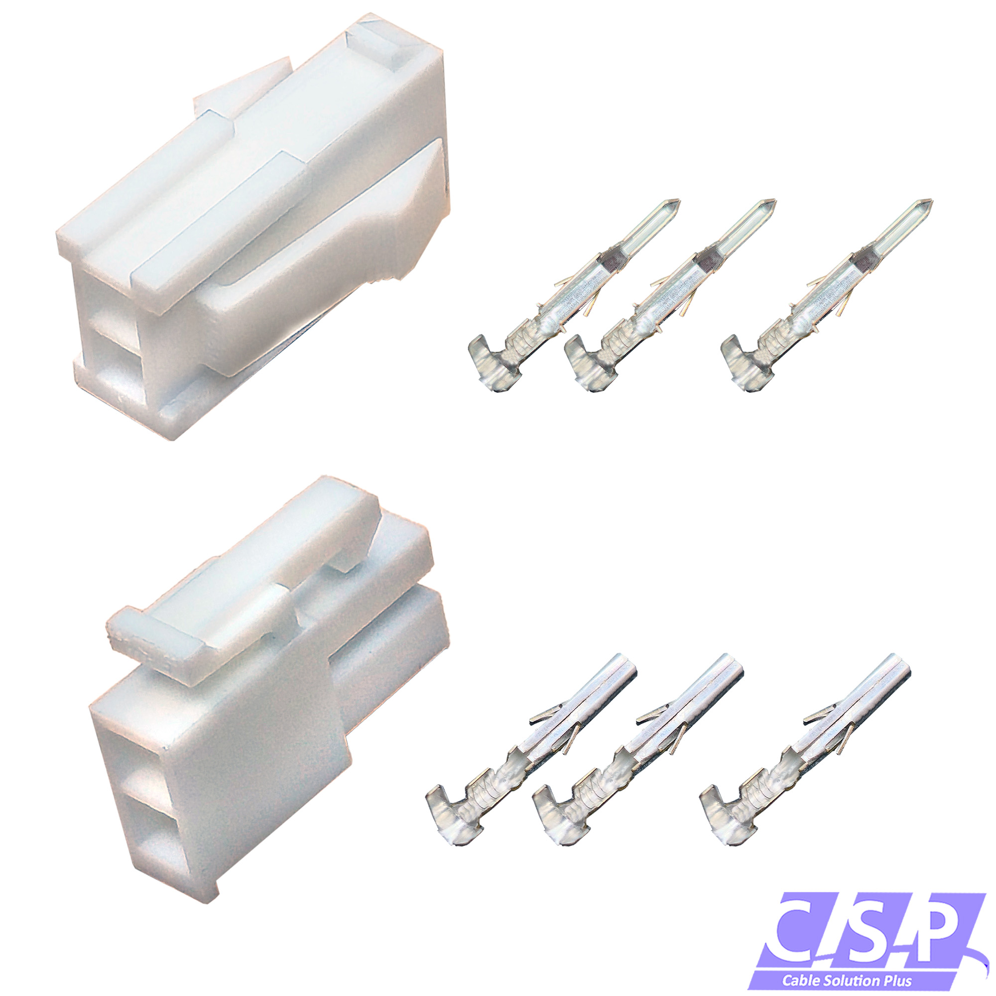 Geliefert wird ein 2-poliges Set aus der Serie Molex Mini-Fit Jr. bestehend aus Buchsen- und Stiftgehäuse mit passenden Buchsen- und Stiftkontakten incl. je 1x Reservecrimp für Querschnitt AWG18-24 und Leitung mit einem Außendurchmesser von Ø 1,30-3,10mm