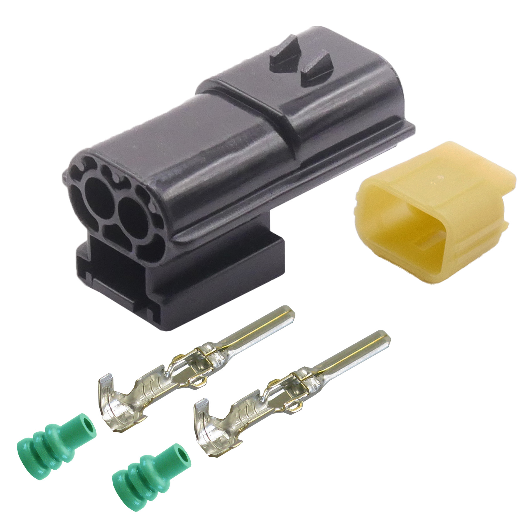 Geliefert wird ein Reparatursatz/Upgrade Steckeratz bestehend aus 2-poligen Steckverbinder, Verriegelung mit Kontakten und Seals für Leitungen Automotive FLRY, AWG, FLRY, mit Querschnitt 0,75mm² -2,00mm² mit einem Außendurchmesser Ø von 1,65mm bis 2,70mm.